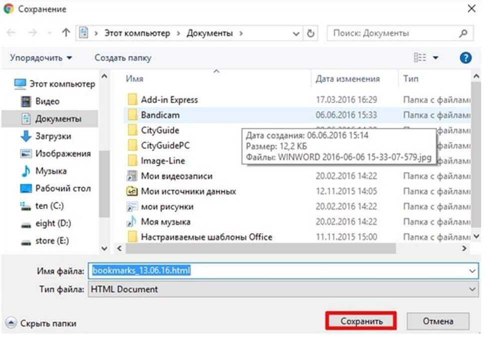 4. Названием файла по умолчанию будет «bookmarks_текущая дата.html».