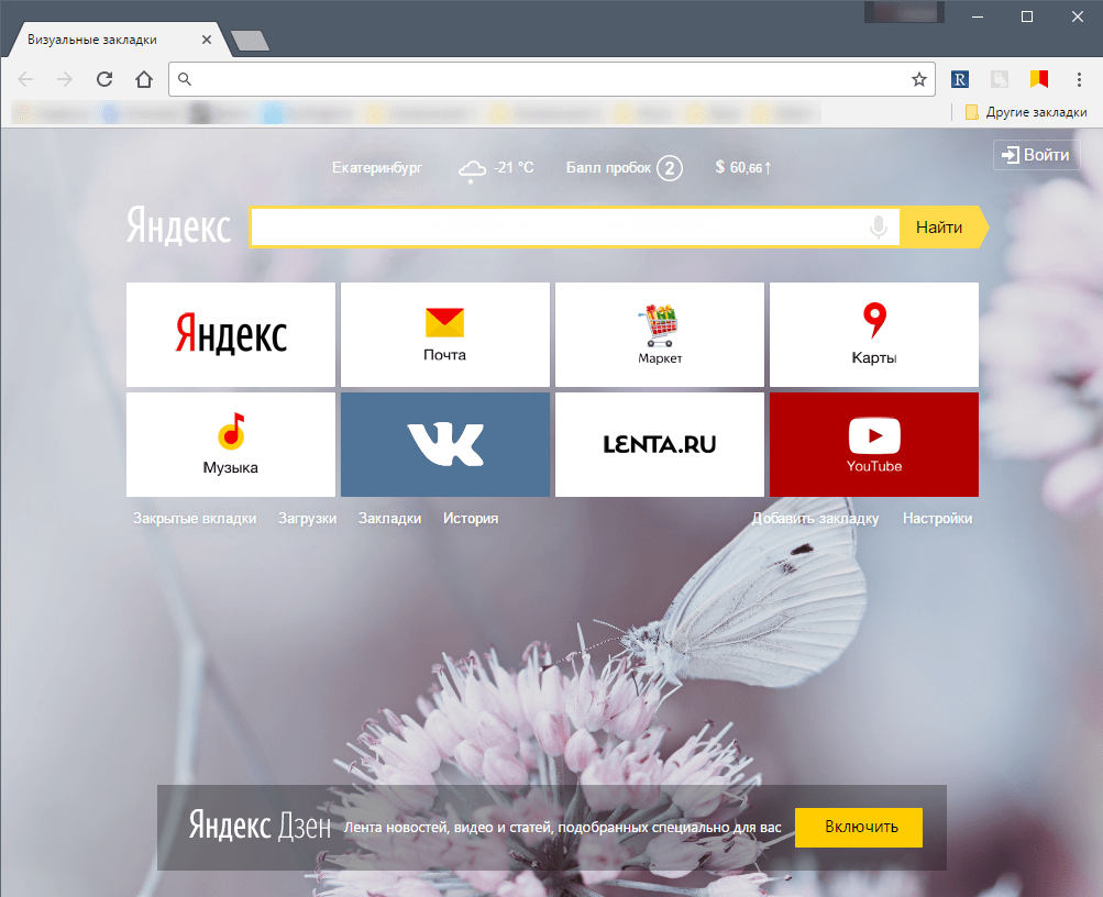 Теперь при создании в браузере новой вкладки, у вас будут отображаться визуальные закладки от Яндекса. У вас уже создано несколько визуальных закладок в виде плиток на основе ваших интернет-посещений, но большая их часть – .
