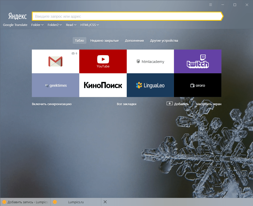 - в Яндекс.Браузере адресная строка выполняет роль и поисковой строки, тем самым не дублируется, как в других браузерах;