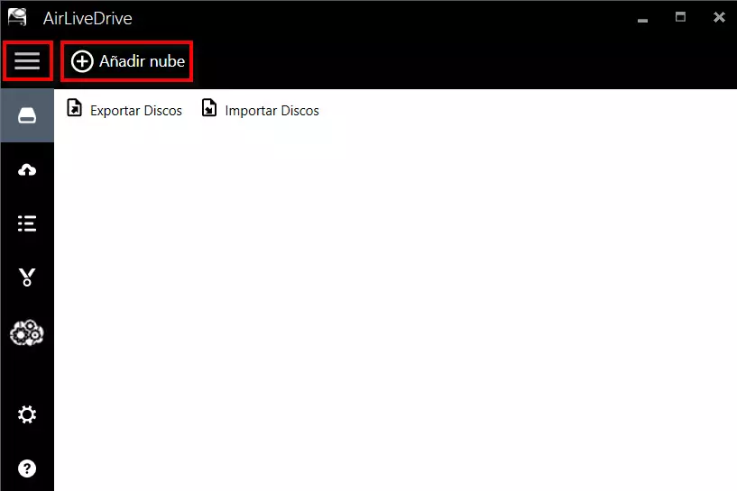 The first time we start Air Live Drive we will see a screen like this with which we will be ready to start working.
