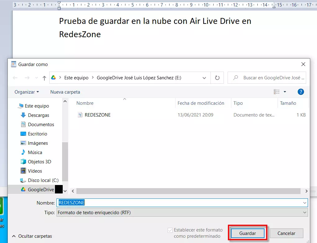 This means that we can work with our usual tools and save the files in the cloud directly as can be seen here: