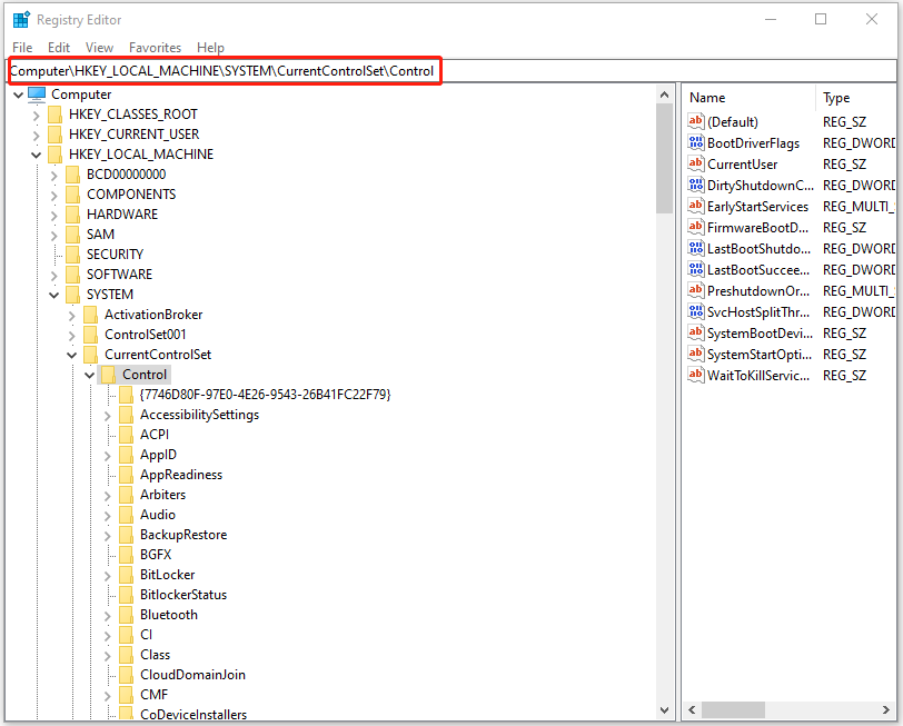 HKEY_LOCAL_MACHINE\SYSTEM\CurrentControlSet\Control