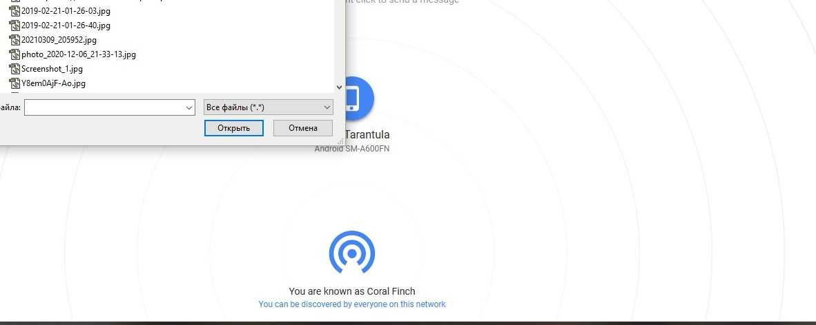 Для отправки изображения или видео с компьютера необходимо кликнуть по иконке смартфона. После этого откроется интерфейс выбора файлов. Аналогичное действие нужно будет совершить, если возникнет необходимость отправить фотографии со смартфона на компьютер.