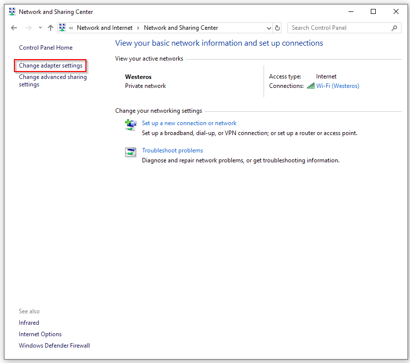 Then, click on Change Adapter Settings.