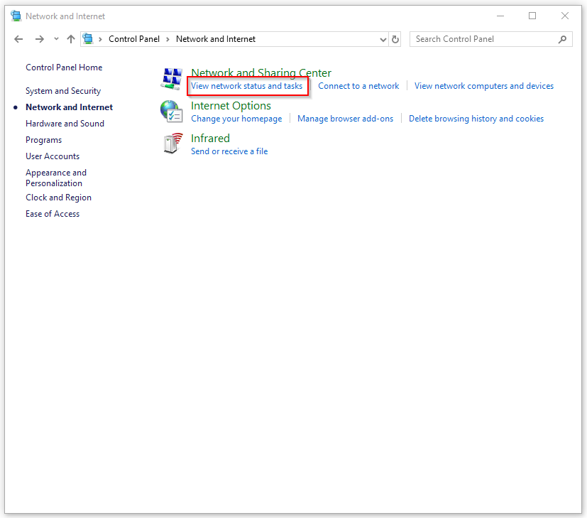 Click View network status and tasks.