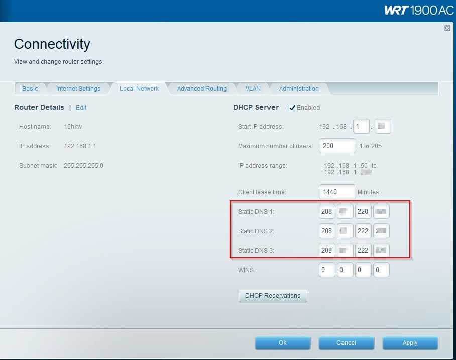 - OpenDNS: 208,67. 222,222, 208,67. 220,220