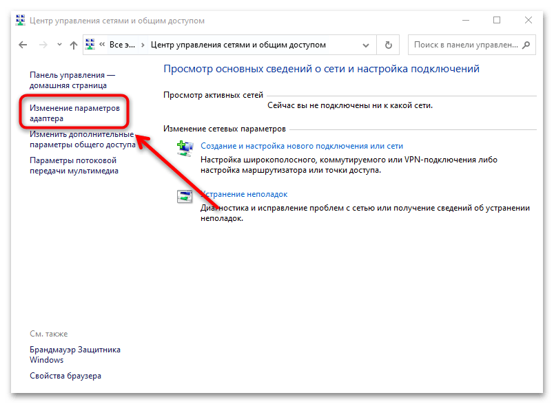 Далее после того как появится новая страница, с левой стороны нажмите на строку изменение параметров адаптера.