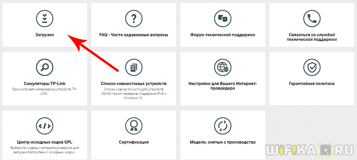 На сайте ТП-Линк заходим в раздел «Поддержка», где мы найдём всё, что нам требуется для прошивки устройства.