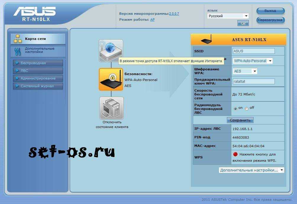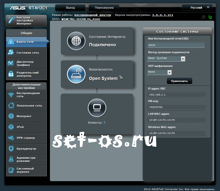 То же самое у новых версий маршрутизаторов Асус с прошивкой ASUSWRT: