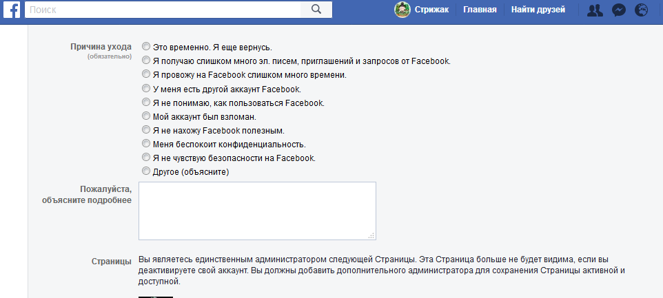 Этот раздел создан не просто так, благодаря вашим ответам сообщество делает выводы и старается улучшить свой сервис и свои возможности, чтобы как можно меньше людей деактивировали свои страницы. Помните, что деактивация аккаунта не означает деактивацию Messenger – вы можете продолжать им пользоваться так же, как и всегда.
