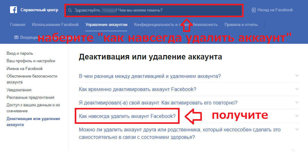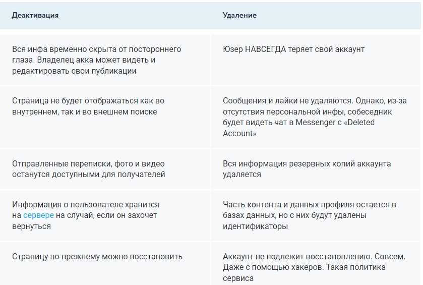 Вы можете удалить аккаунт в фейсбуке навсегда, по своим причинам, например, за неуважение к Русским и России. Только после удаления вернуть его уже не получится, только создавать новый. В сравнительной табличке ниже вы увидите разницу между временным и полным удалением.
