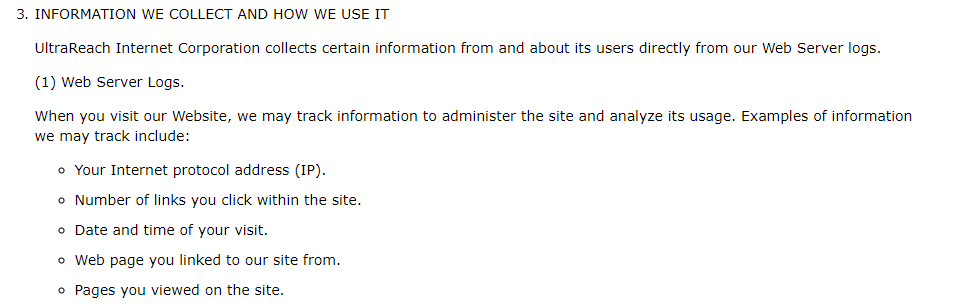 Этот обзор Ultrasurf VPN показывает, что провайдер ведет некоторые журналы веб-сервера. Когда вы посещаете их сайт, они могут вести учет ваших IP-адресов.