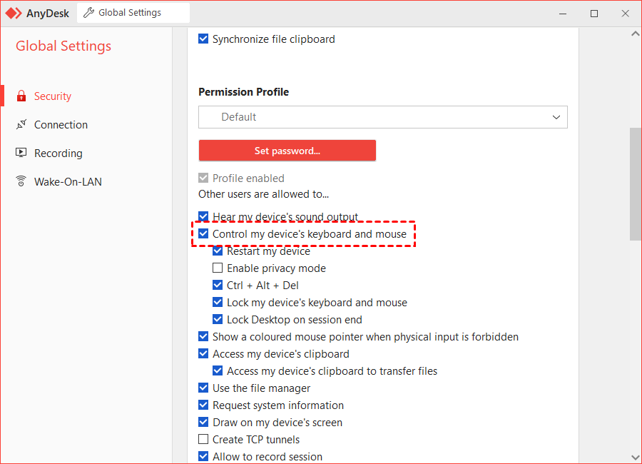 If the AnyDesk keyboard is not functioning, it could be because someone using the remote computer has disabled access to their keyboard and mouse. You can ask them to enable this access by following these steps: