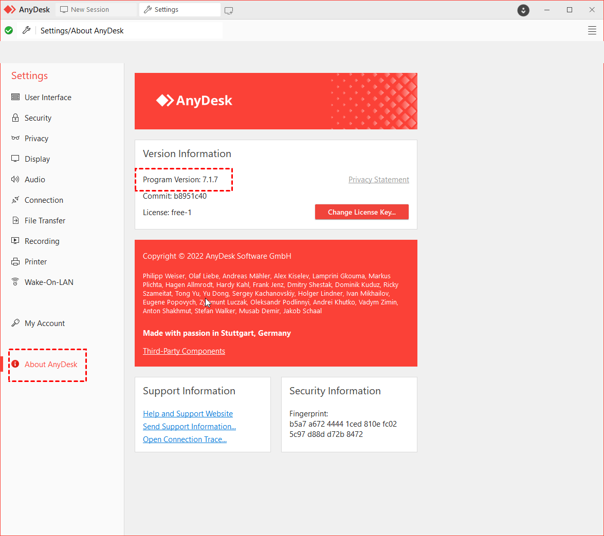 Step 2. Go to About AnyDesk and check the version to ensure you have the latest.