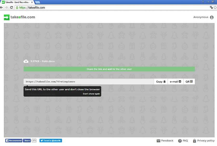 Когда вы укажете файлы появится уникальный URL-адрес, который нужно передать другу. Скопируйте его, а затем передайте его по электронной почте или чату.