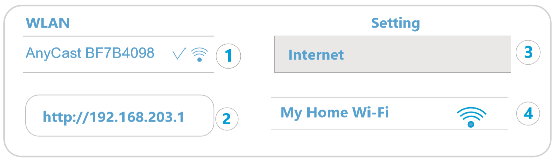 2.1 Connect your device to AnyCast SSID via wifi (SSID and password shows on the TV screen)