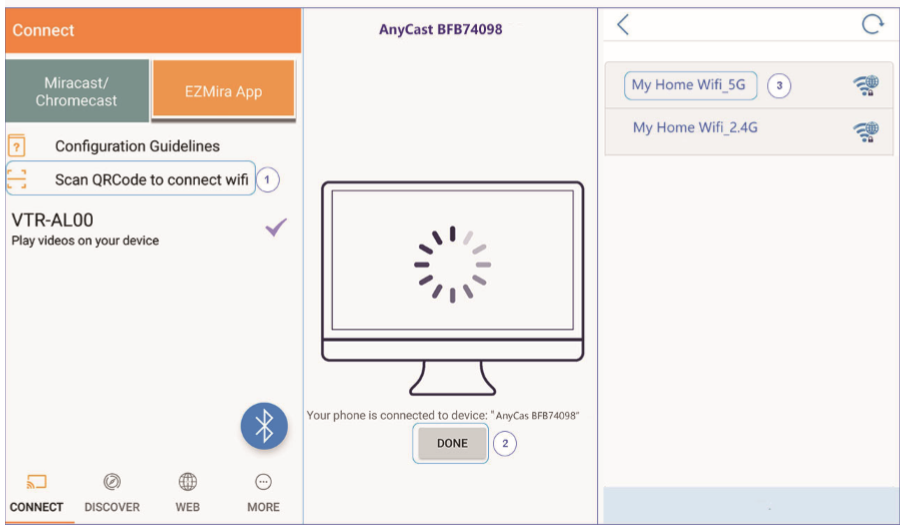 1.3 Tap “Done” icon after AnyCast connecting to your phone via wifi. The wifi setup page will pop out automatically.