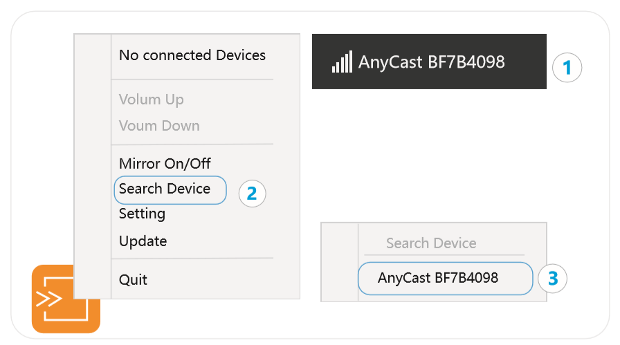 2.4 Select AnyCast device and the Windows PC screen will mirror to the TV automatically.