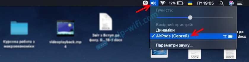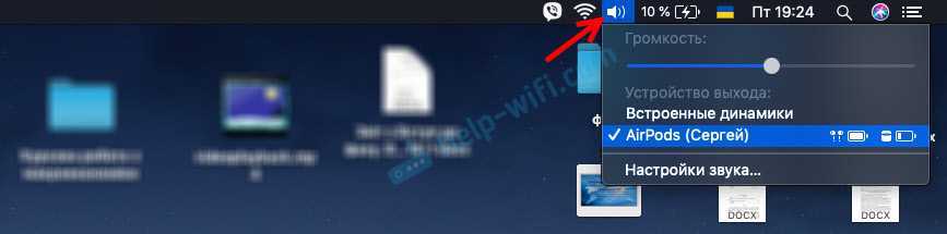 В настройках звука можно сменить источник вывода звука. Например, переключить его на встроенные динамики MacBook, даже когда Аирподсы подключены. Там же можно посмотреть уровень заряда наушников и футляра.
