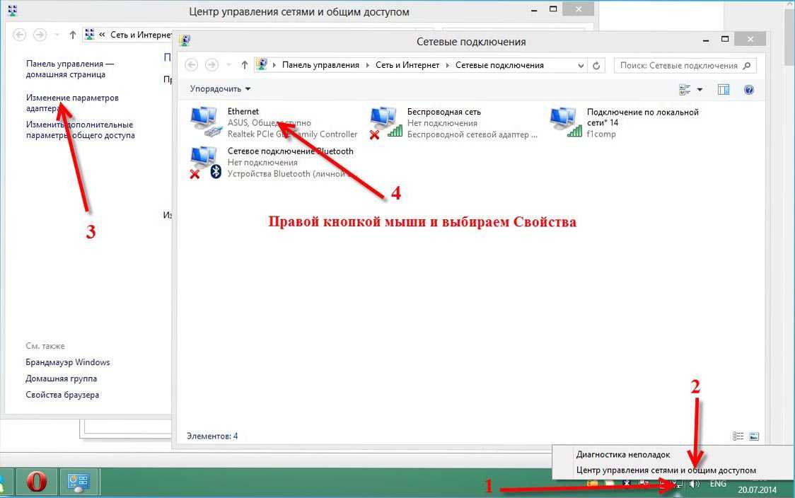 - Пользователям Windows 10 достаточно активировать уже известную нам функцию «Мобильный хот-спот», установив свои настройки, если нужно. Юзерам Win 7 понадобится нажать на значок подключения к интернету, выбрать «Центр управления сетями и общим доступом», после чего зайти в «Изменение параметров адаптера» и выбрать подключение к интернету. Для этого кликаем на него правой кнопкой тачпэда.