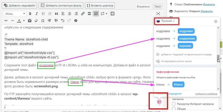 Покажу, как оно работает и, как с его помощью можно проверить правописание на сайте WordPress.