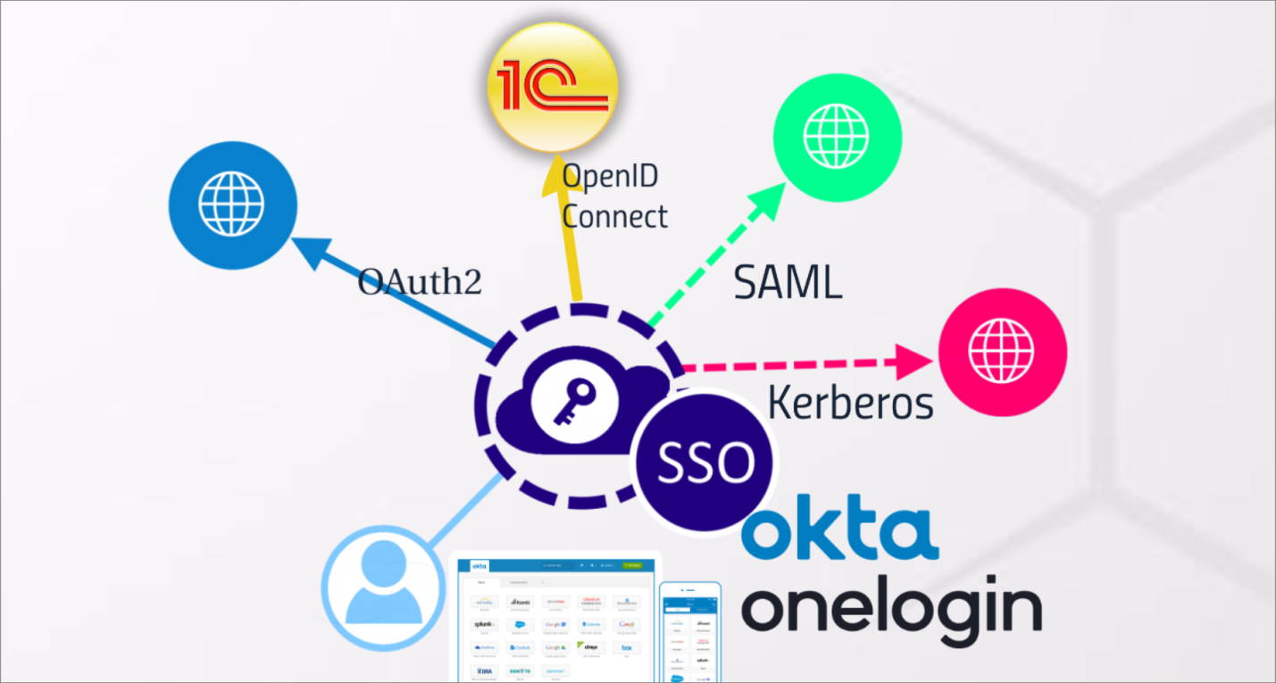 И в крупном Enterprise, действительно, есть некая система Single Sign On (его лидеры Okta и OneLogin), и там дальше приложение уже может авторизоваться с помощью OAuth2, SAML, Kerberos Windows и OpenID Connect. Теперь 1С можно запихнуть в крупный Enterprise, сказать, что у нас есть Single Sign On, мы предоставляем вам наше облачное приложение на платформе 1C:Enterprise – пожалуйста, авторизуйтесь там, никто вас за это не заругает, никто ничего плохого не скажет.