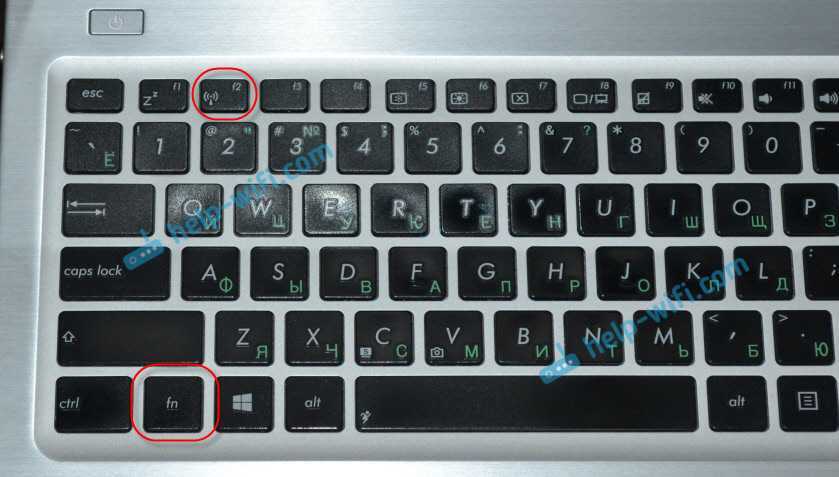 Как правило, для этих задач используется сочетание клавиш. Клавиша Fn с клавишей из ряда «F». Но ноутбуках ASUS, чаще всего это Fn + F2. На клавише F2 нарисована антенна. Вот как это выглядит на моем ноутбуке:
