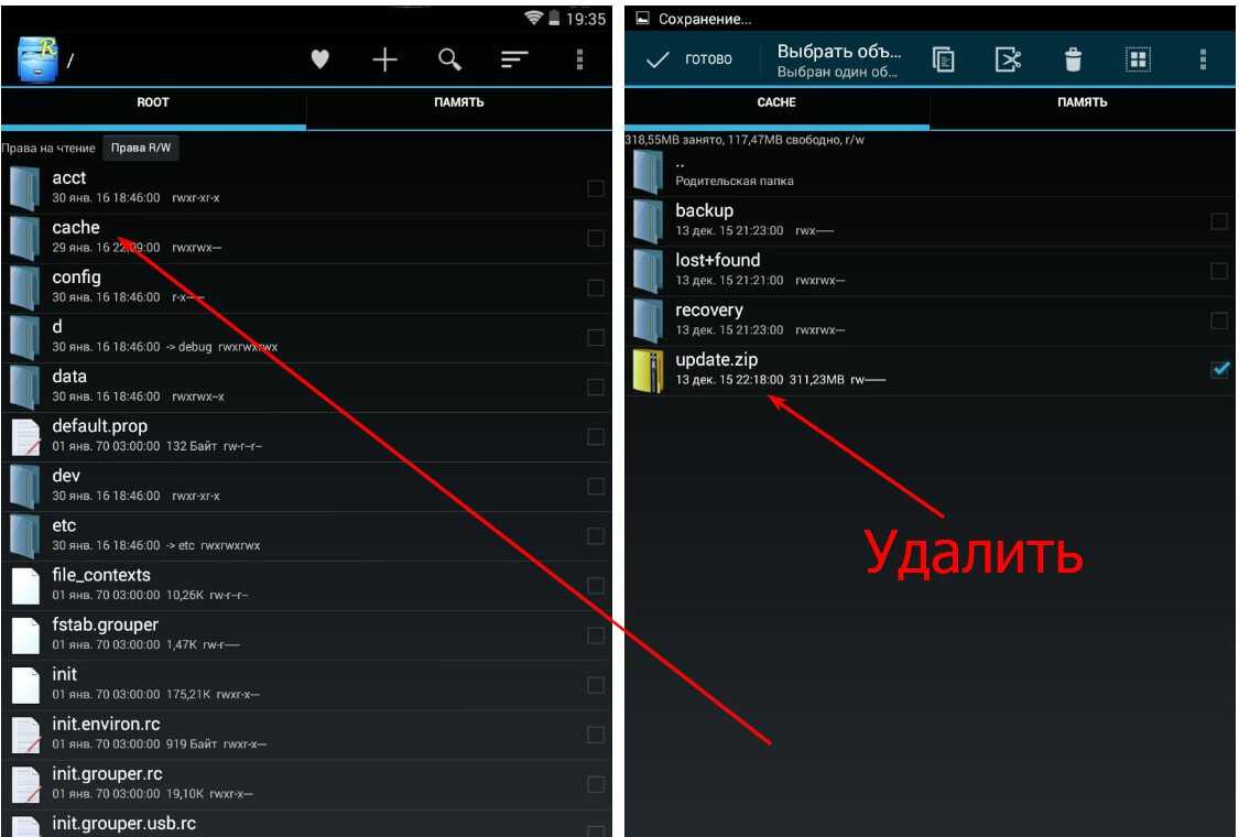 Из этих пунктов следует выбрать «Удалить обновления» и завершить операцию, активировав кнопку «Ок». Она появится в новом окошке. В итоге текущие обновления для выбранных приложений будут стерты.
