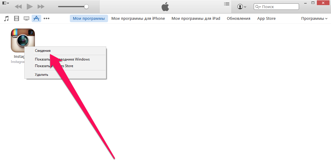 Шаг 18. В iTunes выберите вкладку «Мои программы», найдите ваше приложение и сделав по ней правый клик выберите пункт «Сведения». Здесь вы можете убедится в том, что скачивается именно старая версия приложения