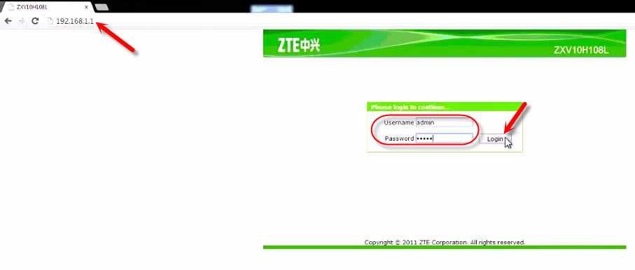 И точно так же заходим в настройки ZTE ZXV10 H108L