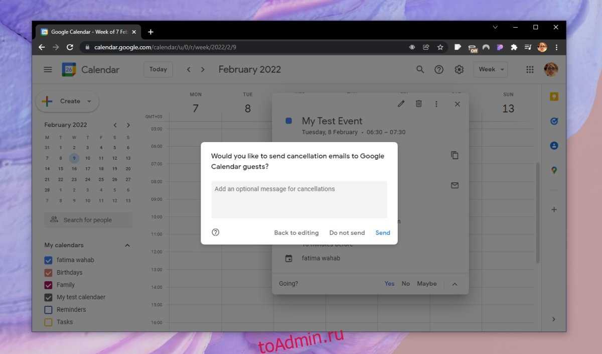 Вы можете отменить мероприятие Календаря Google так же легко, как и создать его. Когда вы отменяете мероприятие Календаря Google, у вас есть возможность сообщить всем, почему оно отменяется.