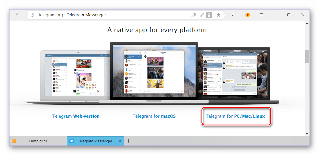 Кликните по гиперссылке «Telegram for PC/Mac/Linux».