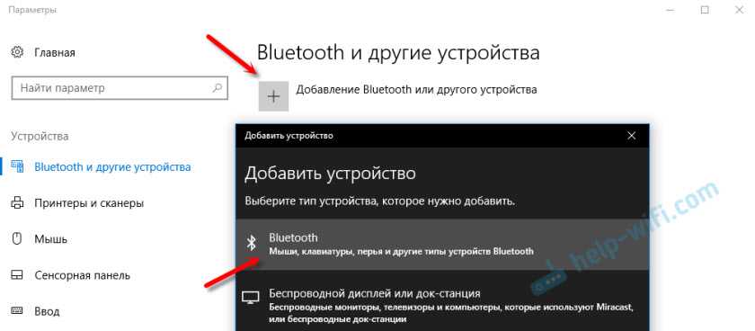 Нажмите на «Добавление Bluetooth или другого устройства» и выберите соответствующий пункт в следующем окне.