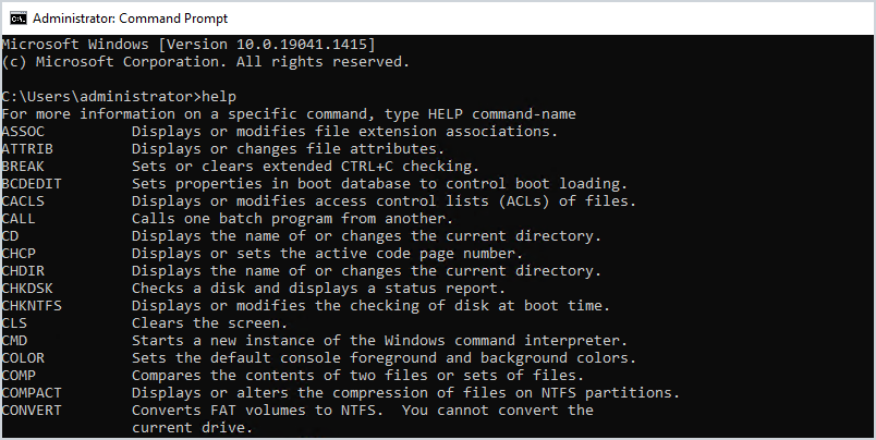 Вы можете набрать help, чтобы получить список системных команд по умолчанию.