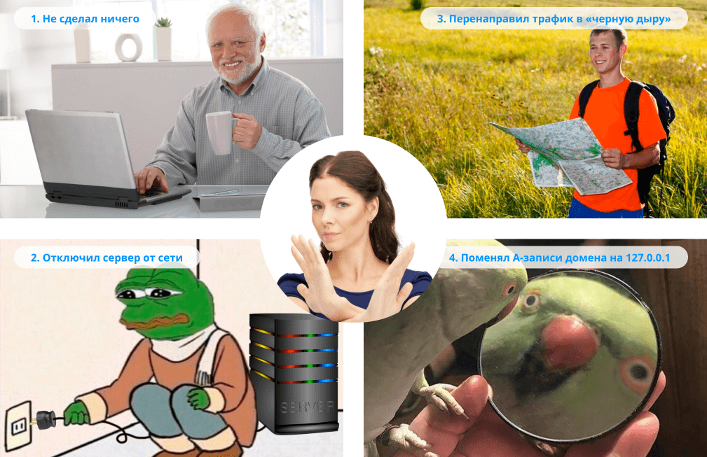 На самом деле: атакующие достигнут своей цели, ведь в случае защиты типа blackholing атакуемая страница оказывается недоступна не только для хакера, но и для пользователя.