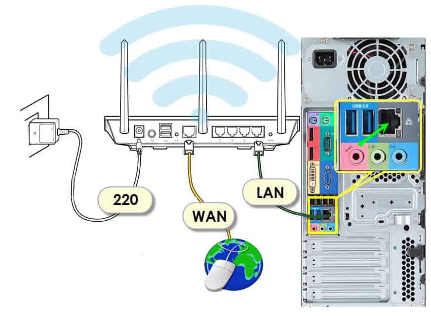 Оставшиеся три порта для локального подключения LAN можно будет использовать для других проводных подключений после настройки. Например, можно подсоединить: