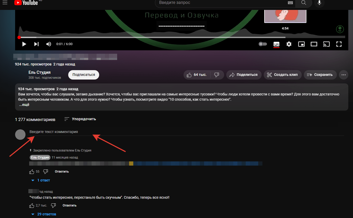 Как оставить комментарий на Ютубе