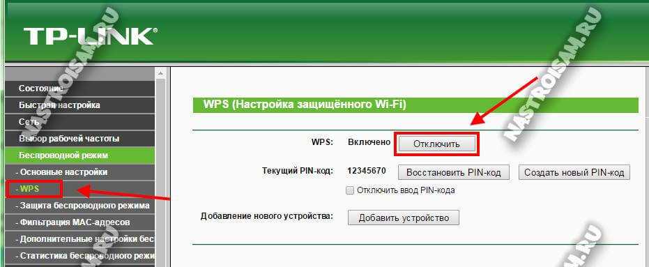 В третьих, чтобы защитить свой WiFi роутер от взлома беспроводной сети обязательно, ещё раз повторю — обязательно отключайте в настройках функцию WPS. Несмотря на всё удобство, вреда она может принести больше, чем пользы. Именно эту брешь используют чтобы взломать запароленную сеть Вай-Фай.