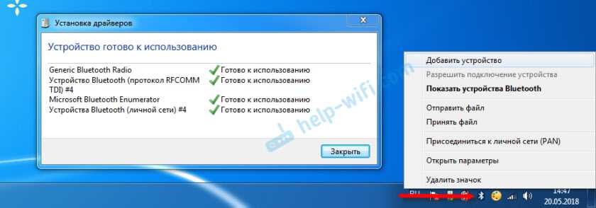 Если вы пользуетесь современными ОС Windows 8/10 — то, скорее всего, после подключения адаптера операционная система автоматически установит на него драйвер и через 10-15 сек. у вас в трее (рядом с часами) появится характерный значок . Кликнув по нему правой кнопкой мышки можно сразу же перейти к добавлению (сопряжению) нового устройства…