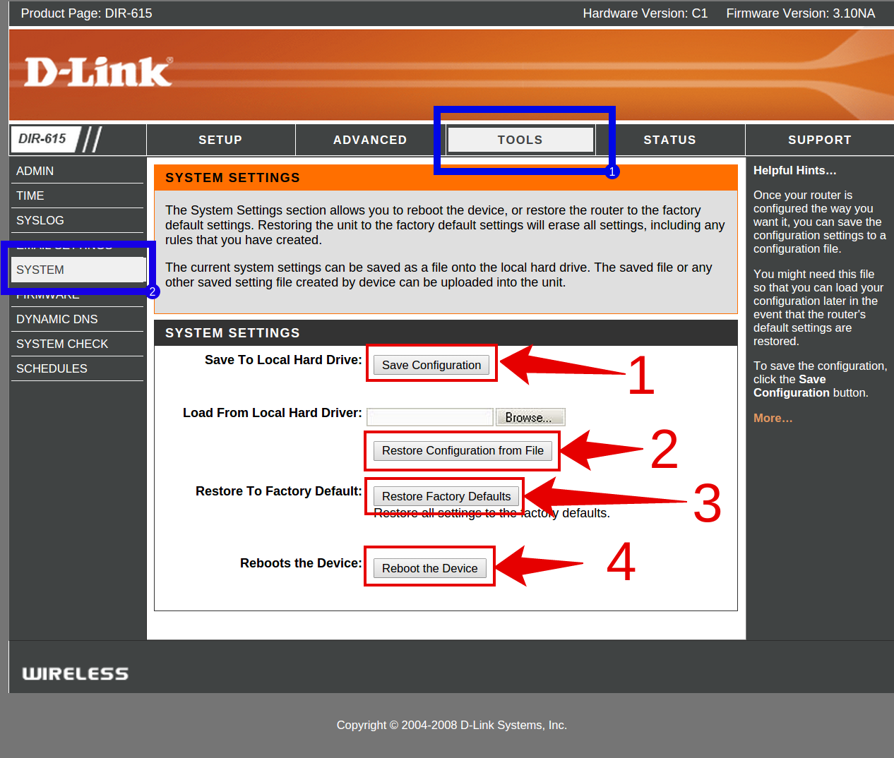 СОХРАНЕНИЕ (ВОССТАНОВЛЕНИЕ) НАСТРОЕК РОУТЕРА D-link DIR-615