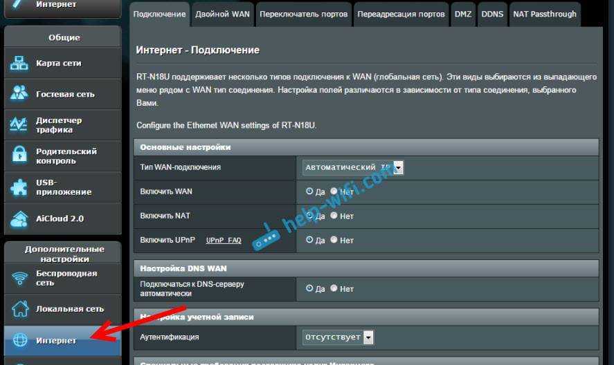 Настройка интернета и Wi-Fi сети в панели управления Asus RT-N18U