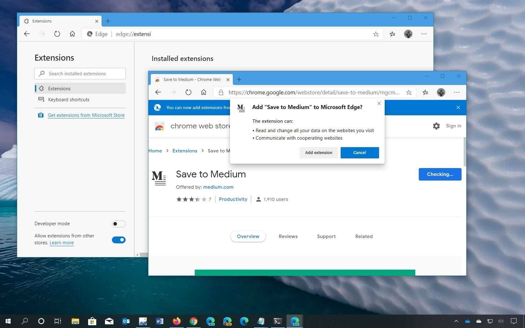 Enable “Allow Extensions for other Stores” option. Now, head on to Chrome web store and download any extension or add-ons that you wish to add on your Edge browser.