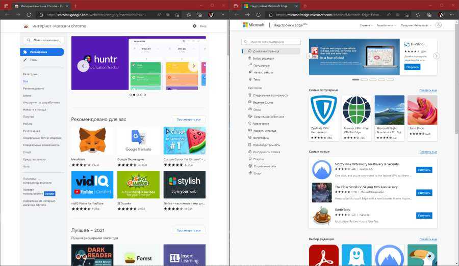 Старая страница расширений в Microsoft Store Магазин Google и магазин Microsoft