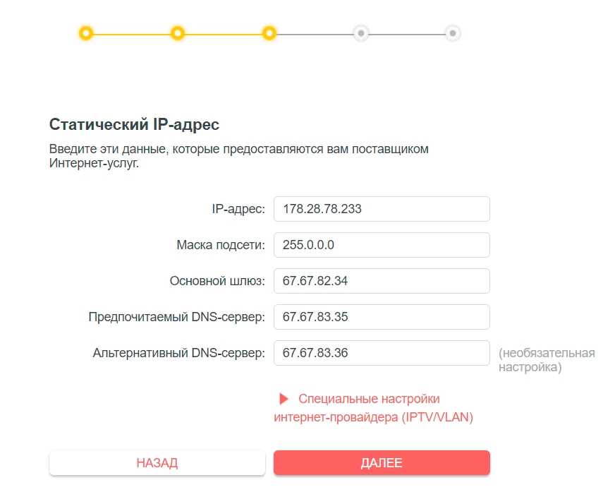 У L2TP и PPTP вписываются примерно одинаковые настройки. Сначала впечатываем имя пользователя из договора, потом ниже указываем пароль. Если провайдер вам выдает статические настройки адресации, то выделяем «Статический IP-адрес» и вписываем все настройки с листа.