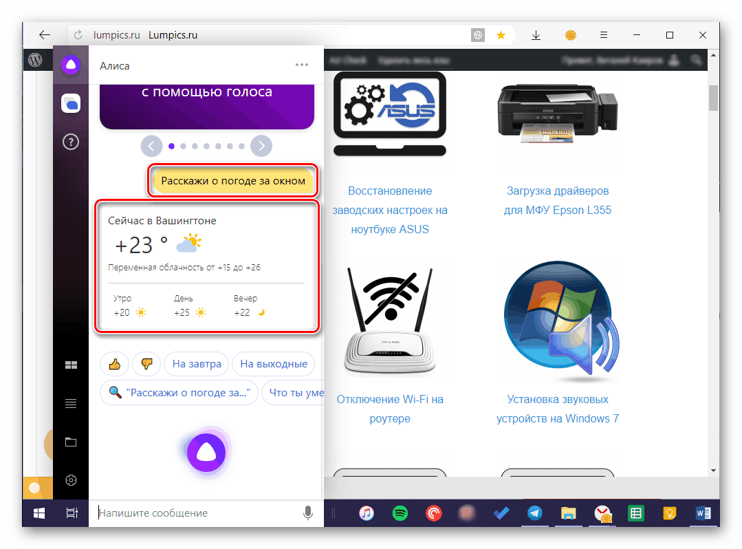 Куда более серьезный и проработанный софт, представляющий собой полноценного голосового ассистента. В «Алисе» уже запрограммированы основные команды, благодаря чему владельцу компьютера не придется долго копаться в настройках. Одновременно с этим предлагаются следующие интересные фишки:
