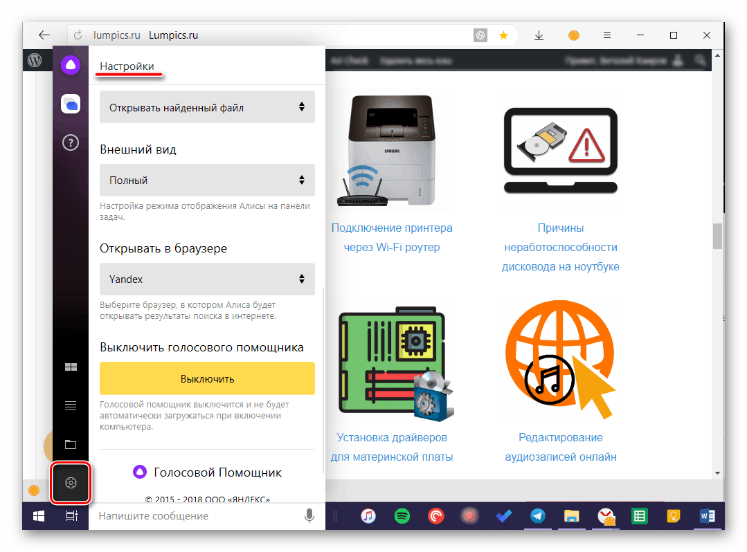 Эти недочеты в работе вашего голосового помощника, придуманного в компании Яндекс, компенсируются наличием возможности отключения голосовой функции. Можно скачать это приложение только в качестве продвинутого поисковика на панели задач Windows, а также есть возможность настройки разнообразных действий с файлами и смены браузера для просмотра результатов выполненного поиска.