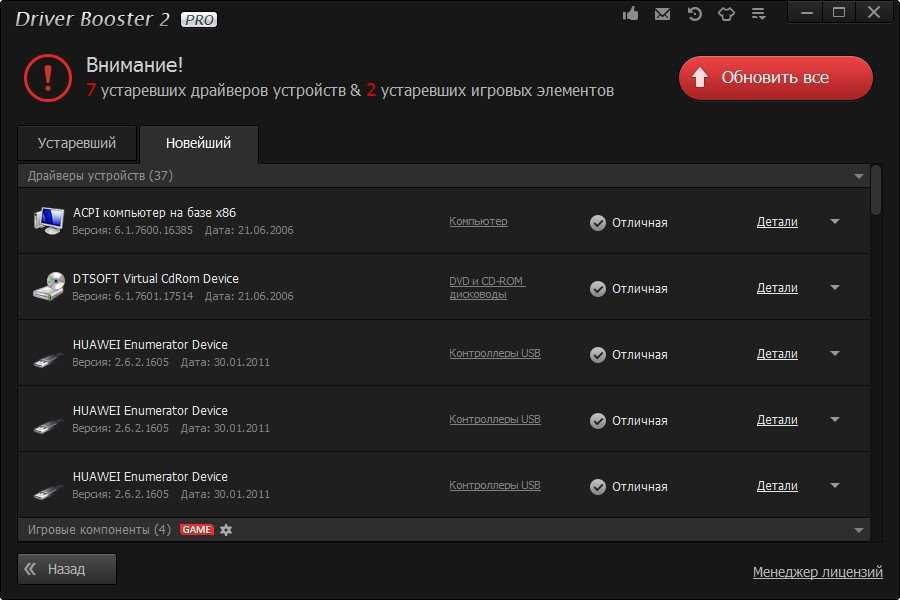 Существуют специальные приложения для установки системного софта. Например, Driver Booster. Он определяет модель оборудования и загружает для него актуальные версии драйверов.
