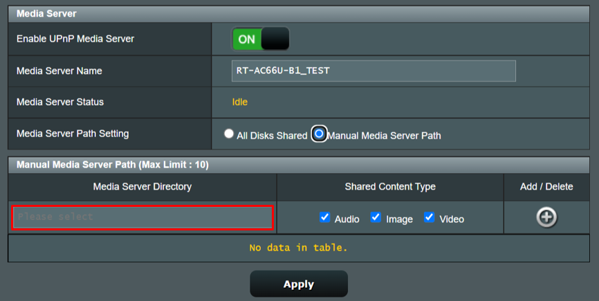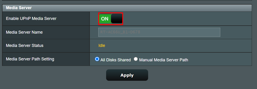 Включить общий доступ к мультимедиа — Включить функцию мультимедийного сервера, вы можете нажать здесь , чтобы получить дополнительную информацию.