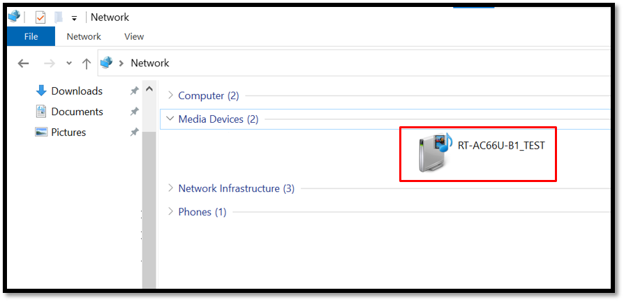To access the USB storage attached to your ASUS router or mesh Wi-Fi, open File Explorer in Windows 10, and go to Network. There, enter the IP address of your router in the address bar, or click on the router’s name if it’s displayed. If you set a username and password for accessing the USB storage, enter the necessary credentials, and click or tap OK.
