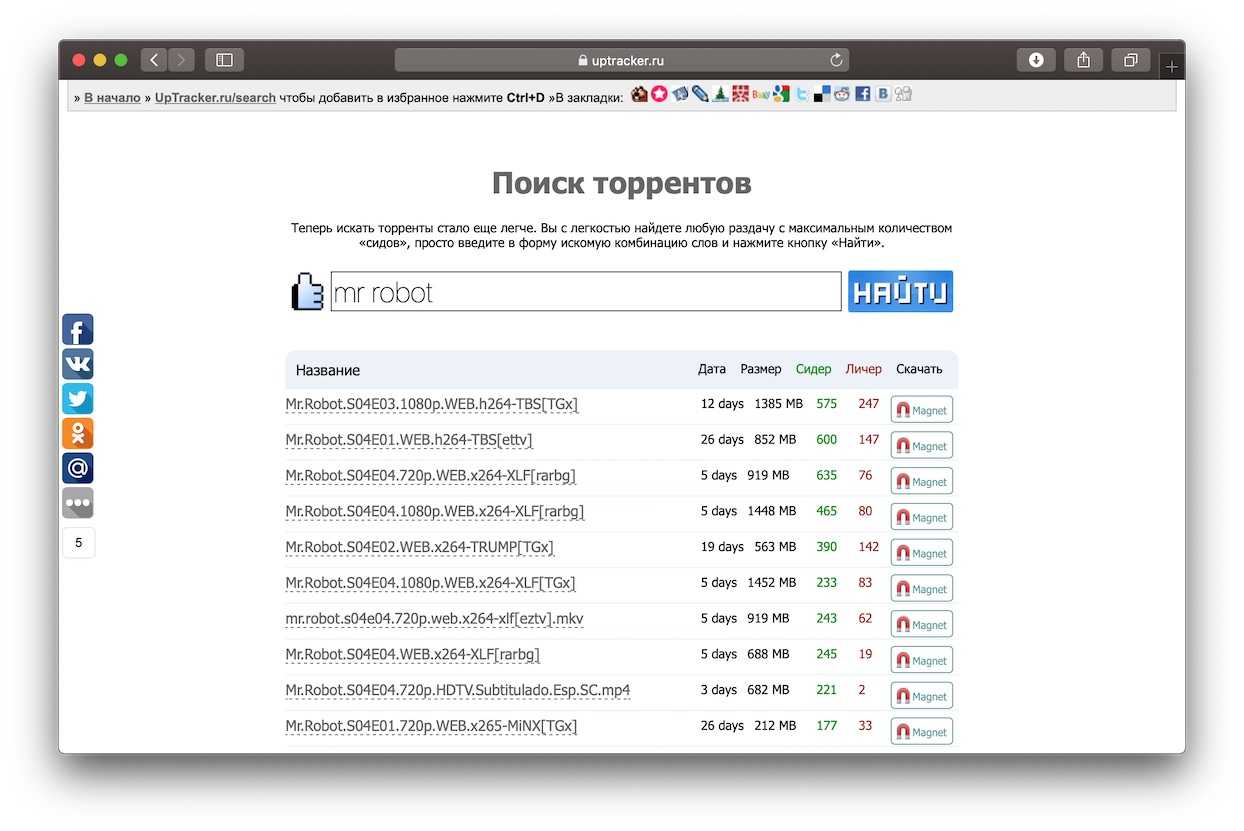 Если вам важна скорость торрент-трекеров и быстрота поиска, а также качество выдаваемого результата, то вы можете добавить сервис Uptracker-поиск себе в избранное, и с комфортом и удобством им пользоваться. Не нужно бегать по сайтам в надежде не нахватать вирусов, можно в два клика найти интересующие для вас файлы и безопасно скачивать их.